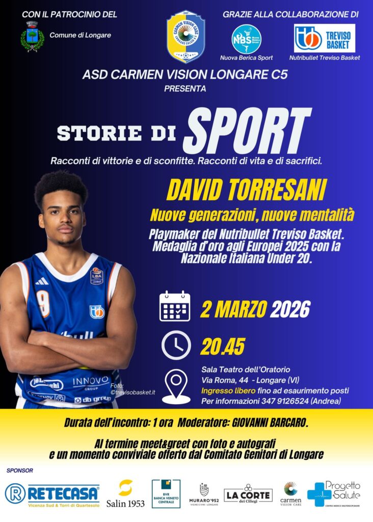 𝐒𝐓𝐎𝐑𝐈𝐄 𝐃𝐈 𝐒𝐏𝐎𝐑𝐓 La terza data! 𝐃𝐀𝐕𝐈𝐃 𝐓𝐎𝐑𝐑𝐄𝐒𝐀𝐍𝐈 Playmaker del Nutribullet Treviso Basket 2 Marzo 2026 𝐍𝐮𝐨𝐯𝐞 𝐠𝐞𝐧𝐞𝐫𝐚𝐳𝐢𝐨𝐧𝐢, 𝐧𝐮𝐨𝐯𝐞 𝐦𝐞𝐧𝐭𝐚𝐥𝐢𝐭𝐚̀ Medaglia d’oro agli Europei 2025 con la maglia della Nazionale Italiana Under 20, giocando da protagonista assoluto. È cresciuto nel Treviso Basket fin dal 2018, diventando uno dei giovani più promettenti del basket italiano. Nonostante […]